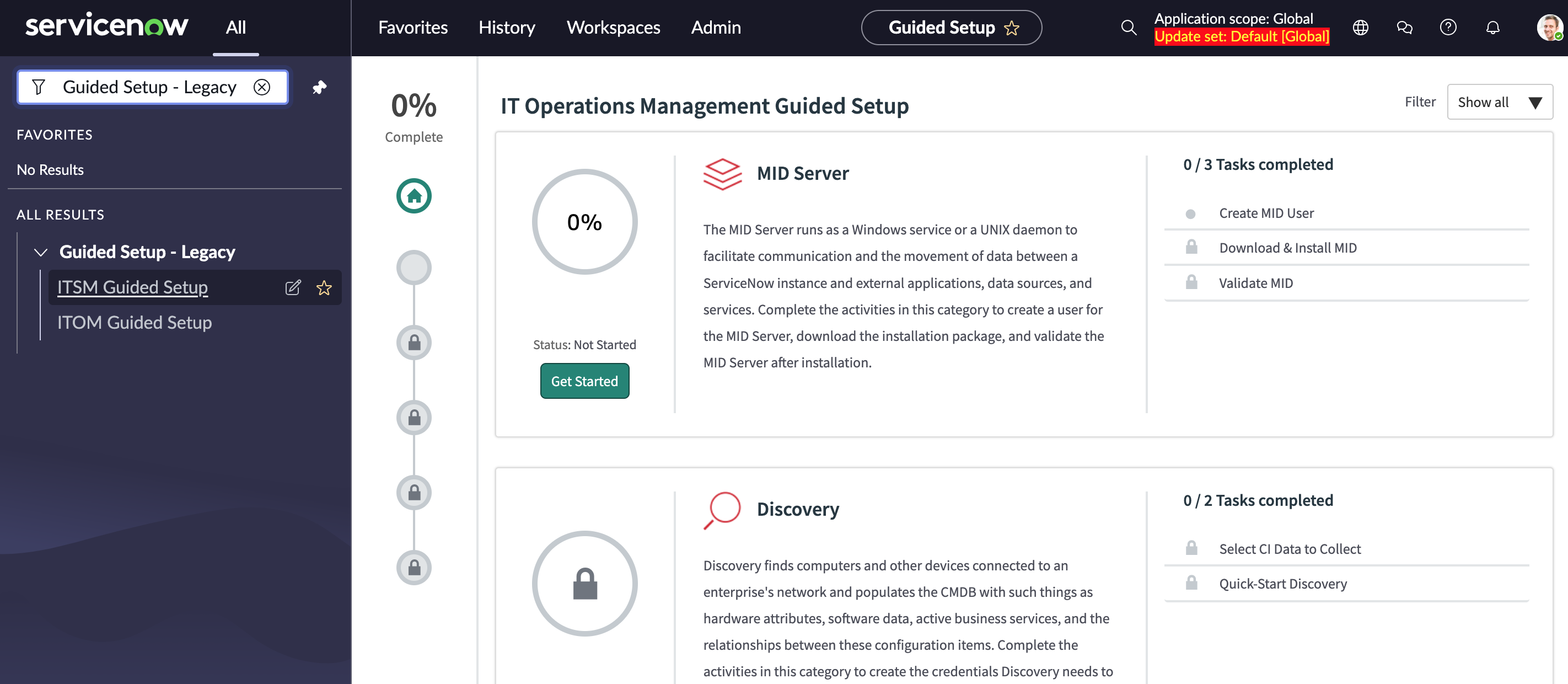 • All > Guided Setup – Legacy > ITOM Guided Setup > Get Started > MID Server