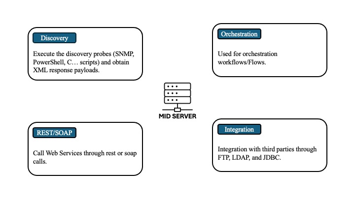 The MID Server is also involved in several other ServiceNow platform processes, as shown in the image below.