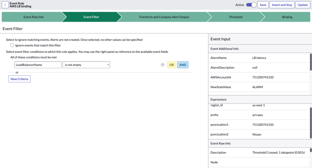 It’s important to note that all the data available to us are those received from the source. Based on that data and the Transformation Rules, we’ll deduce the useful values for alert generation. If we need more information than we’ve received, we may have to manage it directly on the source.