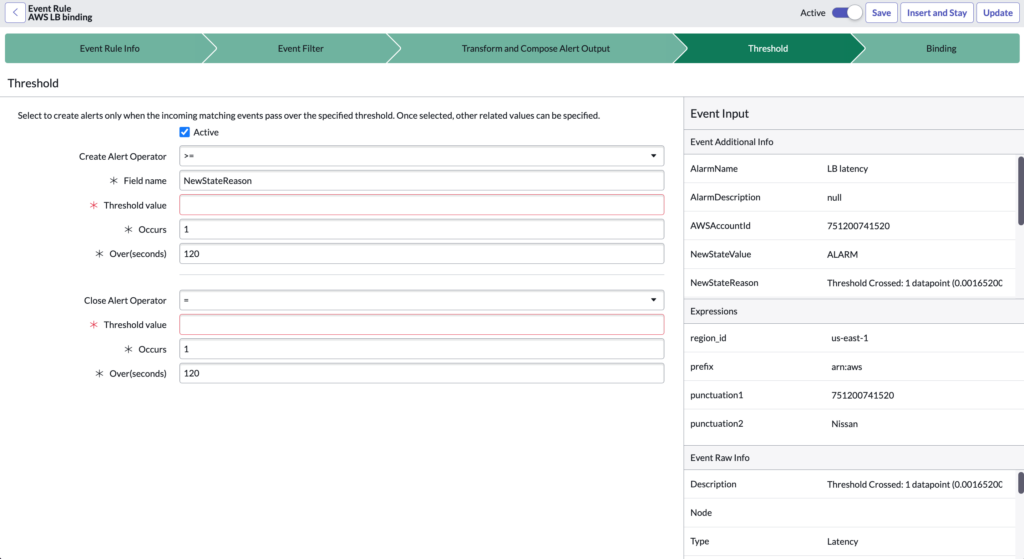 NB: If the “Apply Additional Matching Rule” option is checked, the Threshold is deactivated and Event Rule processing continues.